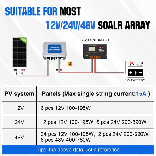 Upgraded 6 String PV Combiner Box with 25A Current Fuse & 125A Circuit Breaker