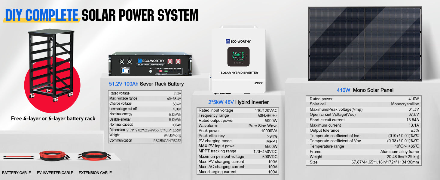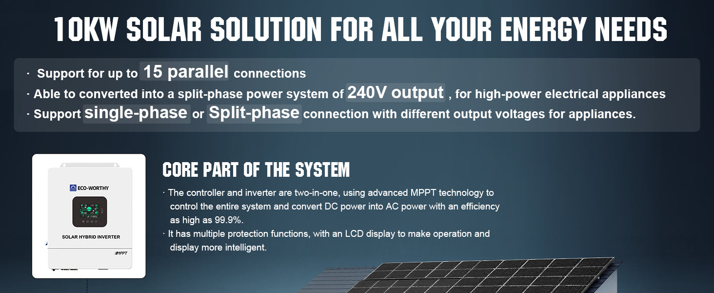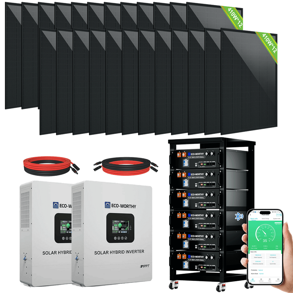 ECO-WORTHY Complete Off-Grid Solar Panel Kit | 2*5KW 120V/240V Output | 20.48kWh/30.72kWh Lithium Battery | 7380Watt /9840Watts of Solar Panels