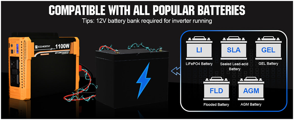 ·Visual and Easy to Use: With three outputs: 2*American standard sockets, 2*18W USB ports, 1*wiring blocks (Hardwire Terminals), and 1*External inverter display&Switch&16.4ft Extension cable to monitor various data: battery power, output power, battery voltage+output voltage, high temperature warning, high voltage warning, low voltage warning, overload warning.