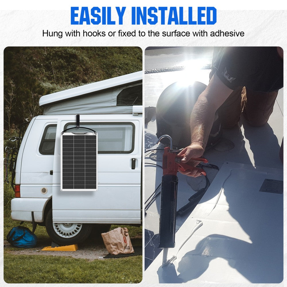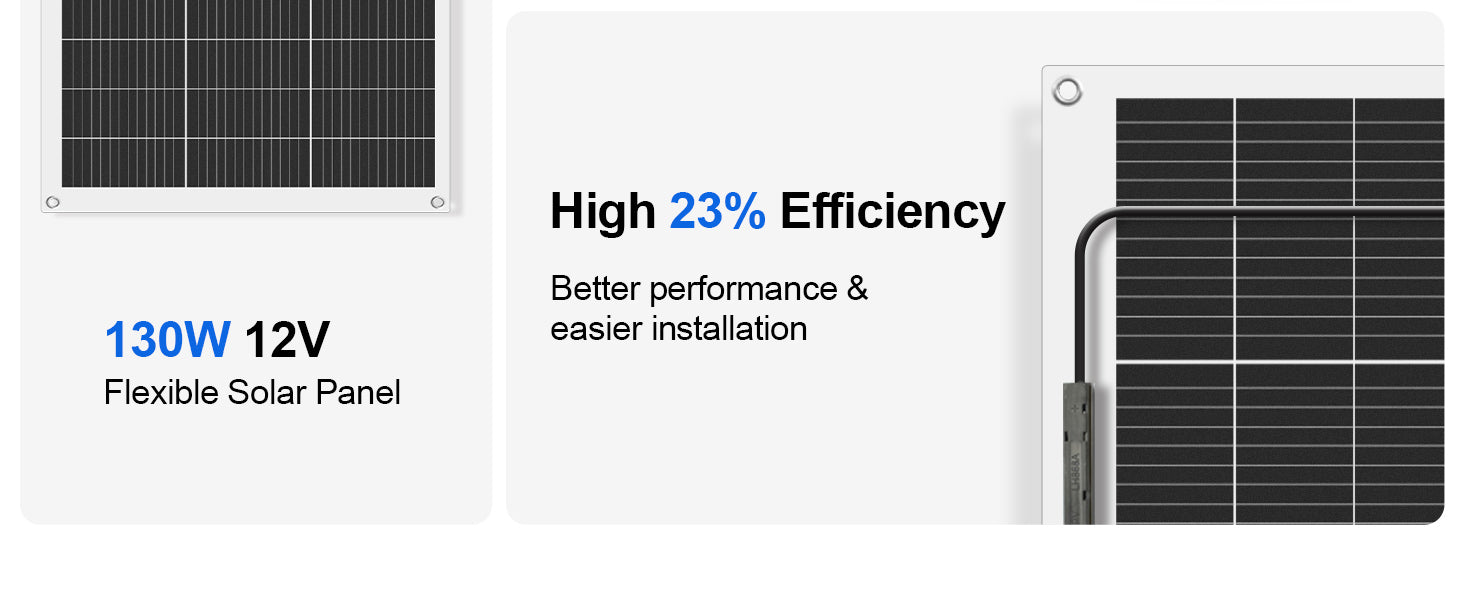 ·Maximum Stability: Our flexible solar modules are made from a special aluminum-plastic composite. The aluminum core of the base plate is 0.8 mm thick and encased in plastic to give the entire module greater stability without reducing flexibility. Thanks to the integrated bypass diodes in the junction box, the module can continue to produce electricity even when it is shaded or in poor lighting conditions.