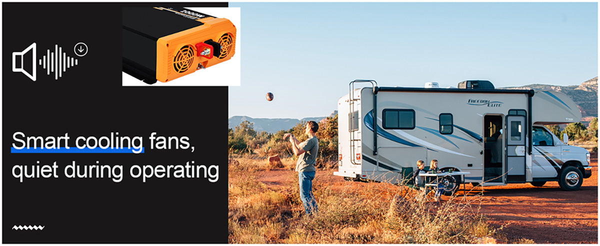 ·Protection of Appliances: Advanced pure sine wave design, which will protect and extend the life of your electronics and appliances. Suitable for coffee machine, refrigerator, microwave oven and other kinds of devices under 2000W. During use, the noise is low and does not disturb your life.
