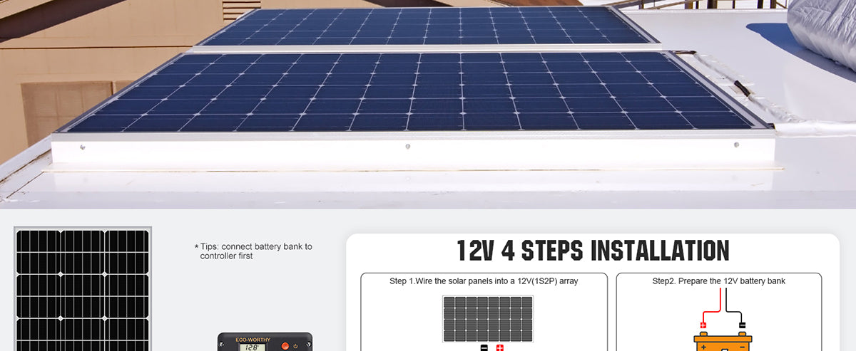 ECO-WORTHY 100 Watt 12V Mono solar panel is backed by 25-year linear power guarantee. ECO-WORTHY LiFePO4 Lithium Iron Phosphate Battery has twice the power, half the weight and lasts 8 times longer than a sealed lead acid battery.