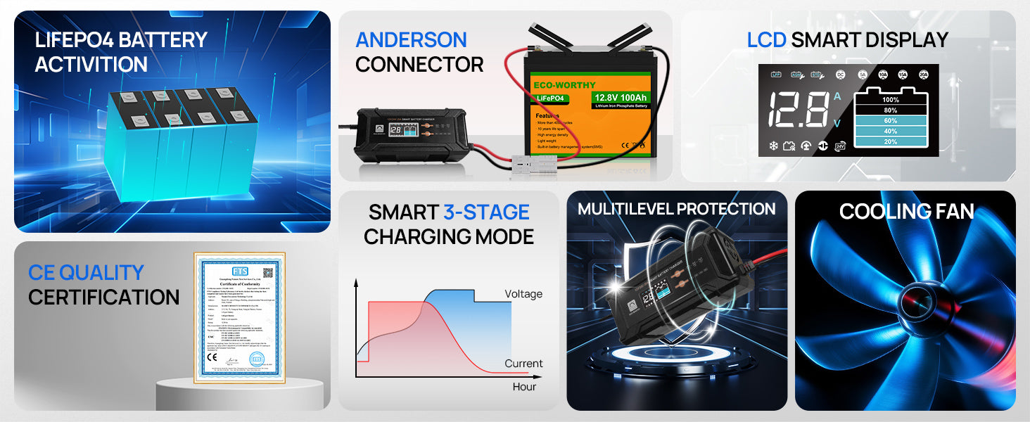 LiFePO4 battery activation function:with lithium battery activation function (12v/24v) can extend battery life to enhance battery performance.