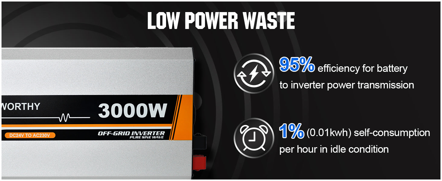 ·Pure Sine Wave Inverter: Much better than Modified Sine Wave Inverter, protect appliance life and no electromagnetic pollution.