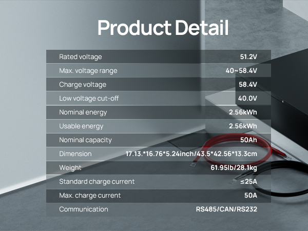 | Battery Capacity: 50Ah | Battery Power: 2560Wh |
