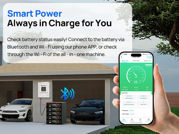 [Integrated Communication Batteries] ECO-WORTHY 48V(51.2V) 100Ah LiFePO4 battery features Grade A cells, CAN/RS485 communication, and Bluetooth/Wi-Fi monitoring. Includes full-metal shell, 100A BMS, 125A air switch for safety. Optional 3U cabinet saves space.