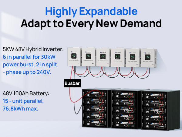 ECO-WORTHY 5.12KWh/10.24KWh Home Backup Power With 48V 100Ah LiFePO4 And 5000W 48V Hybrid Inverter