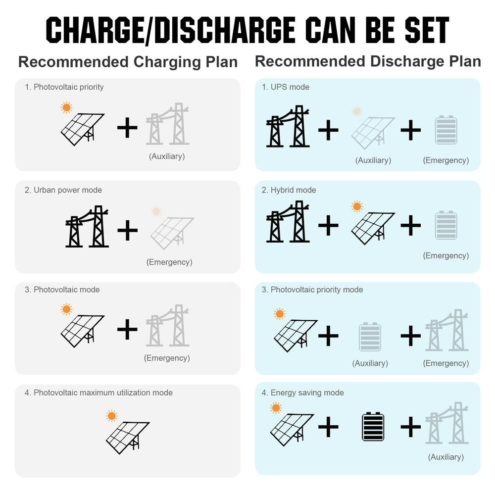 | PV Charging Current Range: 0-200A | MPPT Voltage Range: 150-450VDC |