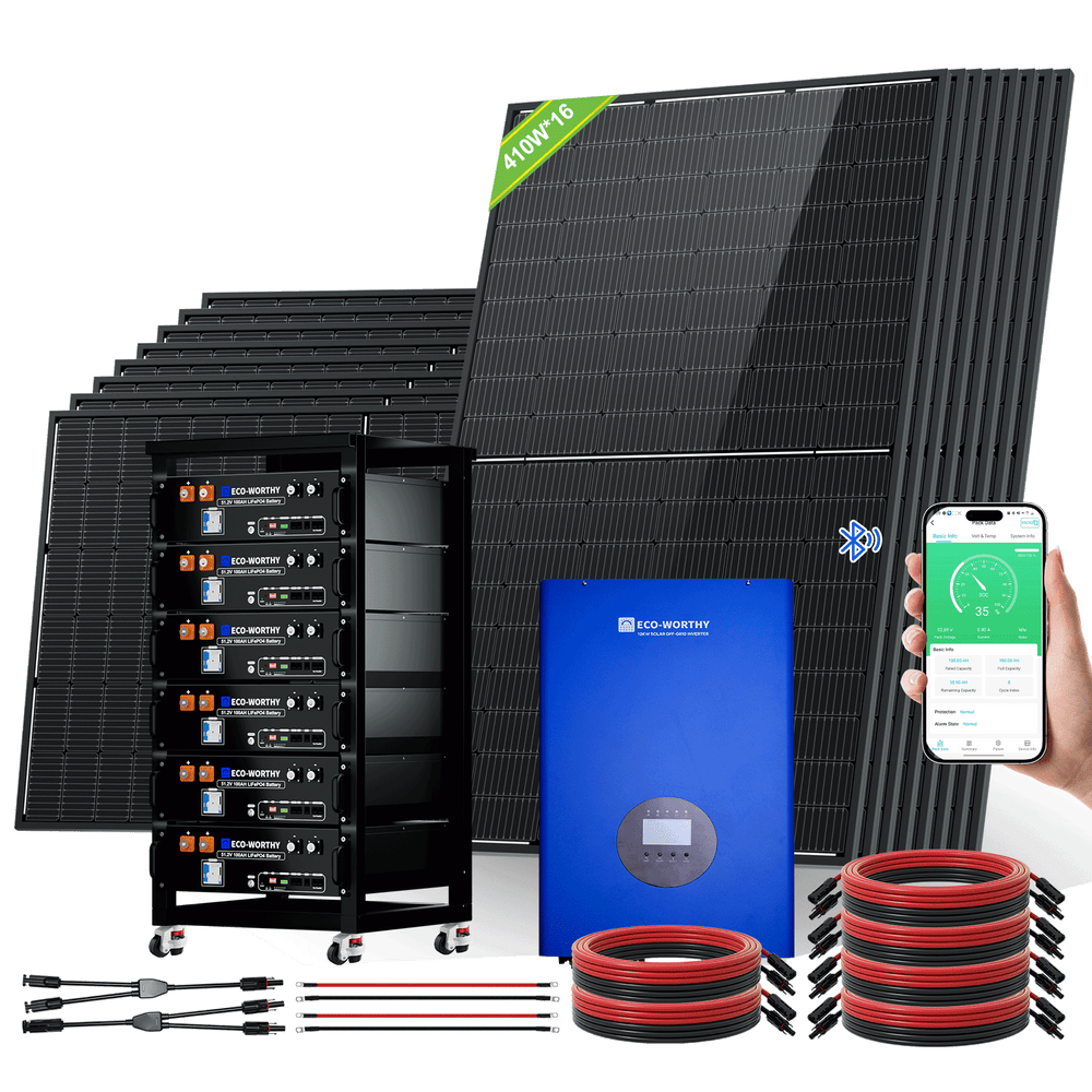 ECO-WORTHY Home Off-Grid Solar Power System: 12000W 120V/240V Output | 30.72kWh Lithium Battery (6*48v 100Ah) | 6560Watts Solar Panel (16*410W)