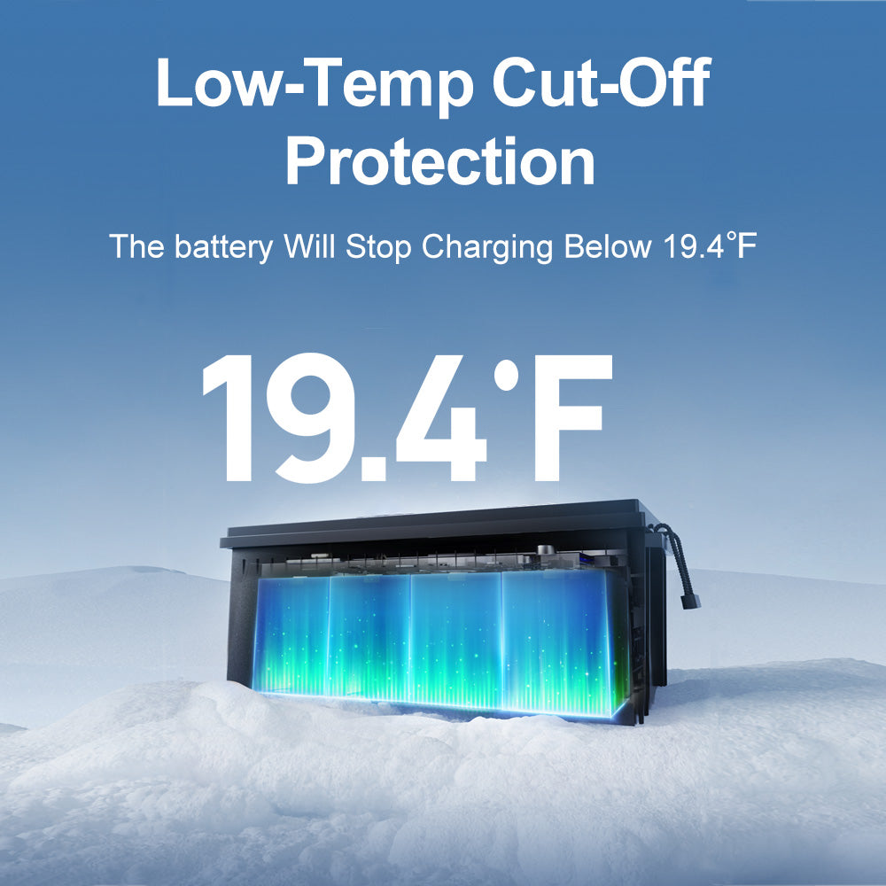[Low-Temp Protection] This 12V 280Ah lithium trolling motor battery is equipped with low-temperature cut-off protection which automatically cuts off the battery from charging when the cell temperature is below -7℃(19.4℉) to prevent the battery cells from being damaged. Especially designed to ensure safe use for the low temperature charging environment in winter. Widely used for RV, solar off-Grid system, boat, camper, marine, travel trailer, motor homes, etc.