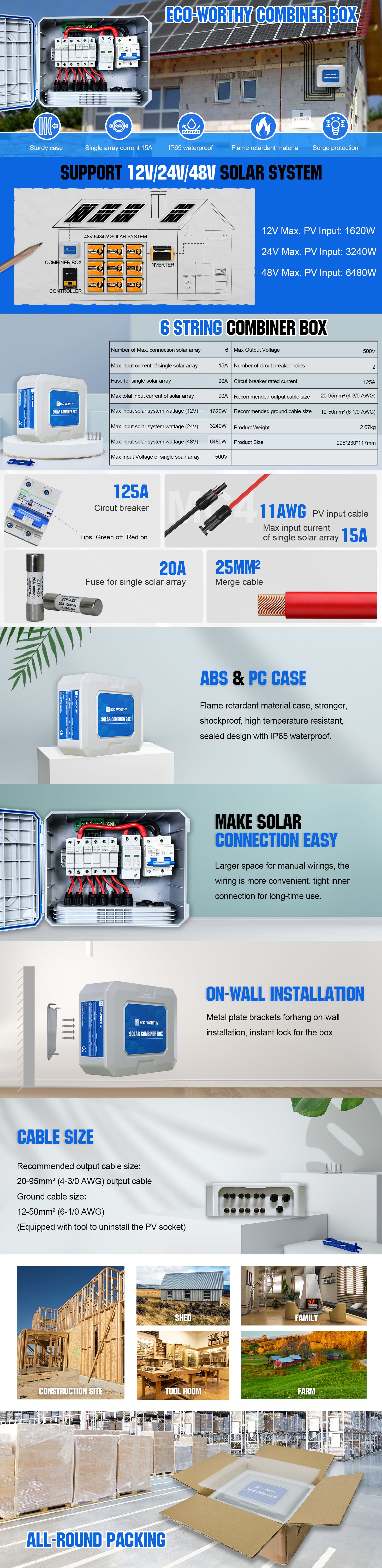 ·Accessories & services: 1*6 string PV combiner box, 2*extra fuses, 4*screws, customer service response within 24 hours, please feel free to contact us if you have any question.